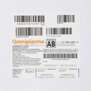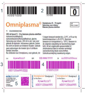 The labelling of the Omniplasma units meets the requirements of the Medicines Act (Geneesmiddelenwet) and (in respect of bar coding) meets the requirements of ISBT 128.