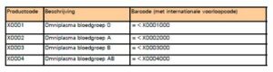 In contrast to the short-life blood products, Omniplasma has an individual product code per blood group.