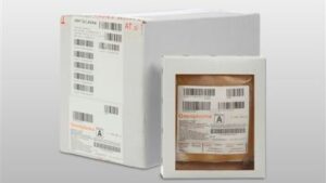 - There is a label on the box which corresponds to the units in the box; this displays the data of the batch in an ISBT 128 bar code (blood group, batch number, expiry date).