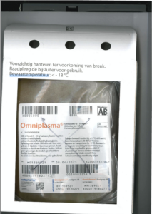 The law states that the product should be deregistered when it is handed over (delivered to the patient or his/her representative). In practice, many pharmacists prefer deregistering it when they add it to their stock. In respect of Omniplasma, account should be taken of the following:- The 2D matrix is attached to a part of the primary bag’s label. On delivery that bag is frozen and (therefore) not slippery. In addition, the primary bag is sealed in foil.